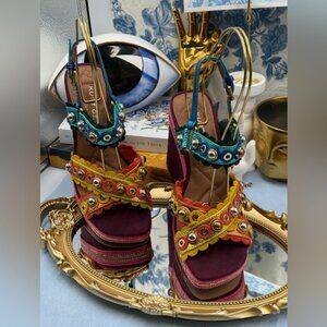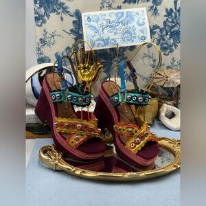 🆕 KURT GEIGER LONDON 🧿 NWOB Scalloped Stud X Wedge Heel Multicolor - Sz 37 US7