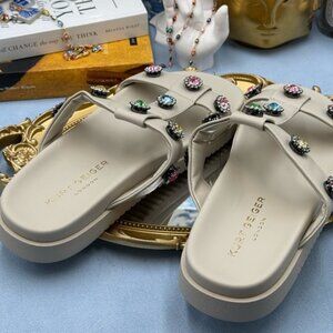 🆕 KURT GEIGER LONDON 🧿 NWOB White Orson Flower Power Slide Sandals, Sz39 US8.5