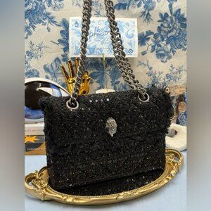 🆕 KURT GEIGER LONDON 🧿 NWOT Black Tweed & Iridescent Sequin Kensington Bag