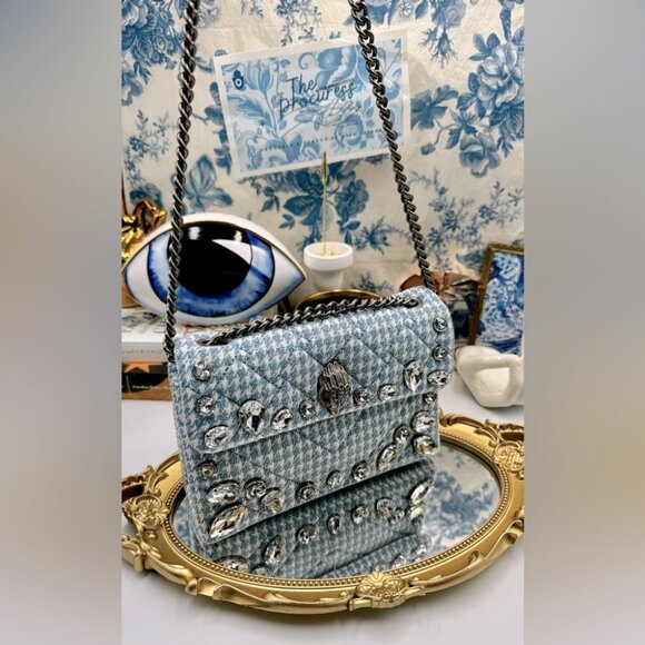 🆕 KURT GEIGER LONDON 🧿 NWOT Blue & White Houndstooth Kensington Bag, Crystals