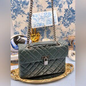🆕 KURT GEIGER LONDON 🧿 NWOT Brixton Lock Quilted Leather Shoulder Bag, Green