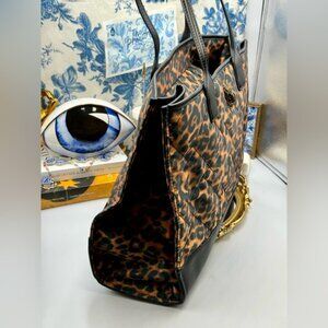🆕 KURT GEIGER LONDON 🧿 NWOT L Recycled Drench Shopper Tote Bag, Leopard & Gold