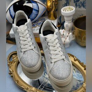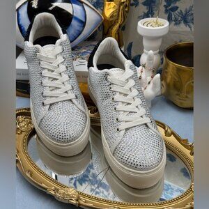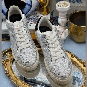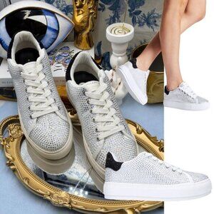 🆕 KURT GEIGER LONDON 🧿 NWOT Laney Silver Crystal Low Top Sneaker, Sz 39 US 8.5