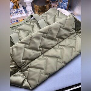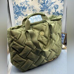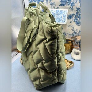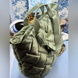 🆕 KURT GEIGER LONDON 🧿 NWOT Large Green Recycled Nylon Quilted Tote Bag