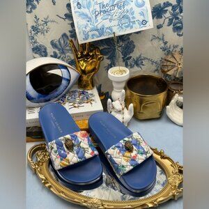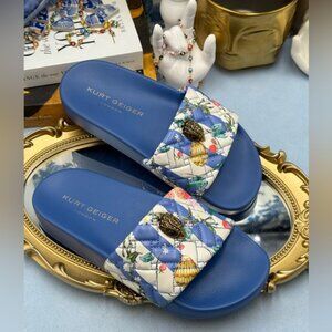 🆕 KURT GEIGER LONDON 🧿 NWOT Meena Eagle Blue Botanica Pool Slide, Sz 36 US 6