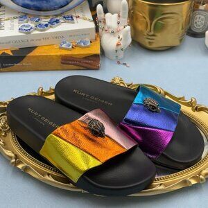🆕 KURT GEIGER LONDON 🧿 NWOT Meena Eagle Metallic Pool Slide - Size 36 US 6