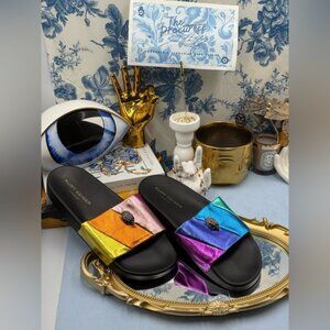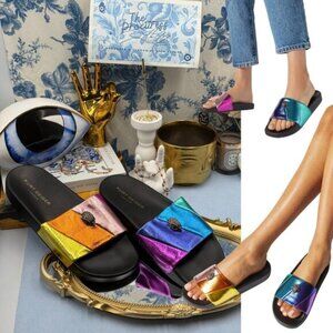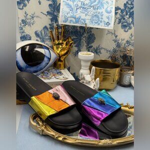 🆕 KURT GEIGER LONDON 🧿 NWOT Meena Eagle Metallic Pool Slide - Size 40 US 9