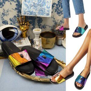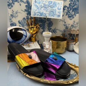 🆕 KURT GEIGER LONDON 🧿 NWOT Meena Eagle Metallic Pool Slide - Size 40.5 US 9.5