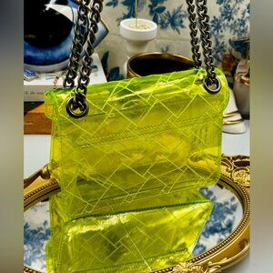 🆕 KURT GEIGER LONDON 🧿 NWOT Mini Kensington PVC Crossbody Bag, Neon Yellow