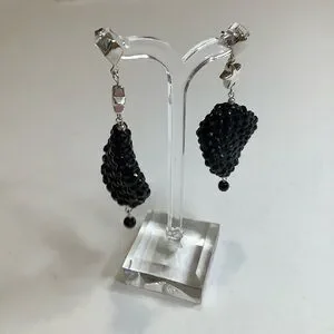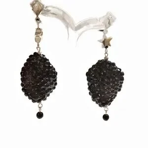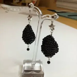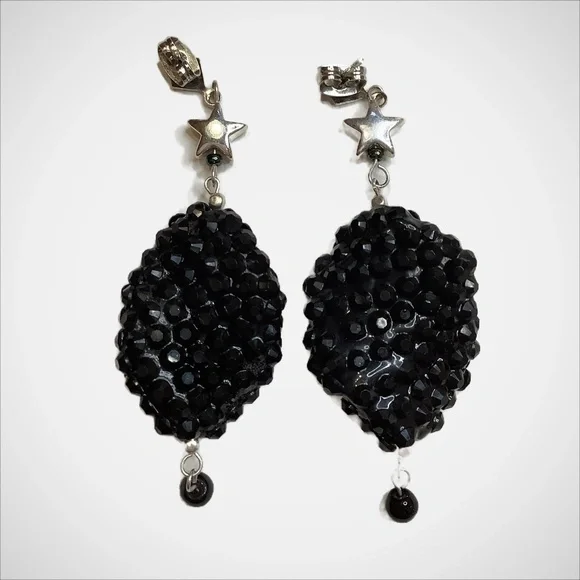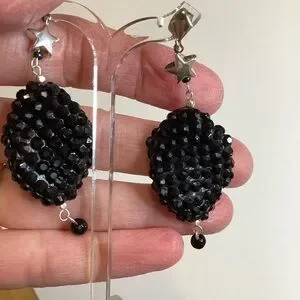 These exquisite handmade black beaded earrings feature a charming star design, perfect for adding a touch of sophistication to any outfit. Dangle stud earrings with silver stars. Lead and nickel free.