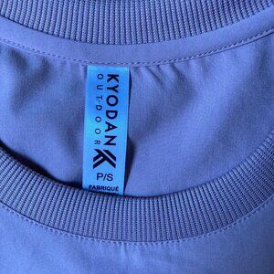 Kyodan outdoor athletic dress size small- color is more like the picture where I show the size and transparency, not the purplish it shows on the full view- its really hard to capture the exact color through the lens- color is described more like a MAUVE