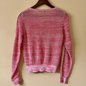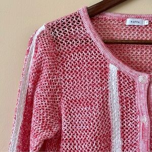 Kaffe| Euro Brand Pink & White Cable Knit Lace Trim Scoop Neck Cardigan Sz L