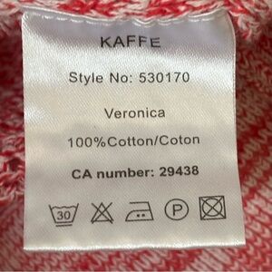 Discover the charm of the Kaffe ‘Veronica’ cardigan, crafted in a delightful pink and white marled pattern. This medium-weight knit features a fitted silhouette with elegant vertical cable detailing and ribbed trims. Euro boutique brand from Denmark. Size large.