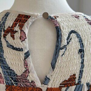 Kaffe Floral Blouse With Smocked Bodice & High-Low Sleeves – EU 38 (US 8)