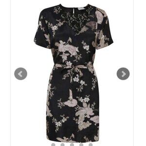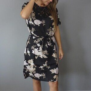 Kaffe India Kajilli black floral mini dress lace illusion v neck EU 40