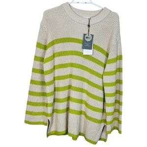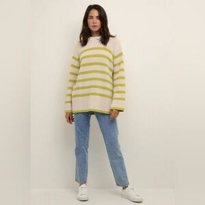 Kaffe KACILLA - Jumper - Cable Knot Oversized sand dollar green stripe/sand xl