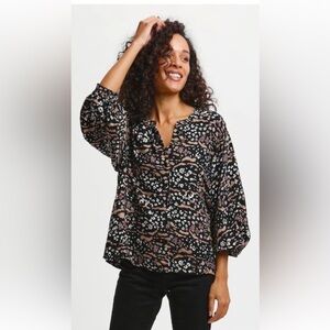 Kaffe KAerina loose fitting button down blouse 3/4 length sleeves 100% viscose