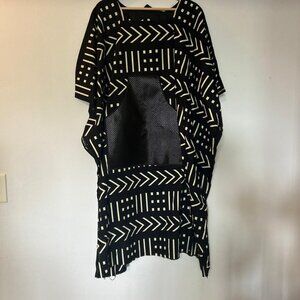 Noir avec des motifs graphiques en crème, créant un look audacieux et contemporain.
