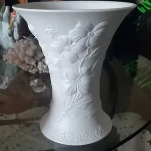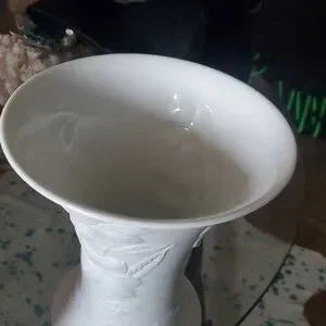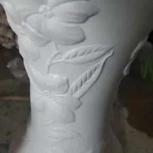 Enhance your home decor with this elegant white floral vase. Its intricate design adds a touch of sophistication to any room.