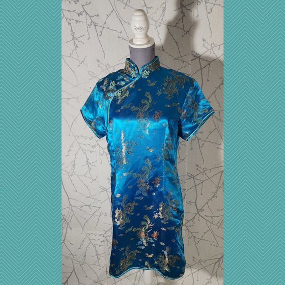 Kaiyu Blue Floral Brocade Traditional Midi Chinese Dress