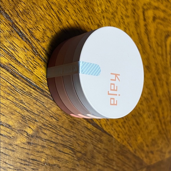 Kaja stackable makeup set with a sleek design. Features a mix of pink and white colors.