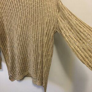 Very good preowned condition, beige, scoop neck, lower sleeve, crochet-like slip over top by Kaktus. An elegant and sophisticated piece. Has an overall luxurious, but informal look.