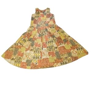 Bohemian 70s Maxi Dress with Large Pockets Vintage Patchwork Pattern PLUS 16 Boho Earthy African Desert Handmade DIY