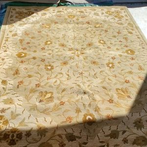 Beautiful Indian wool rug for sale. Rug has been gently used and carefully maintained over the past 15 years. Recently sent out for professional cleaning and dusting and remains rolled up. Pile is approx. 1.0-1.5cm thick. Fibres are all wool on a sturdy burlap cotton backing. No creases or permanent indents. Offering for sale because rug doesn't go with the new decor in our home. Serious inquiries only