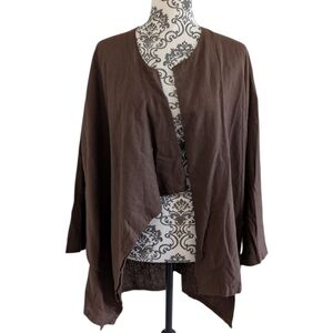 Kaliyana Jacket Brown Linen Blend Open Front Assymmetric Loose Fit Women's L