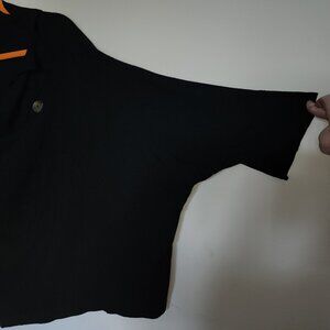 Kaliyana black linen short double breasted jacket with three quarter bat wing sleeves. Great for layering. Fits large. Only worn once.