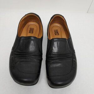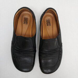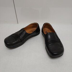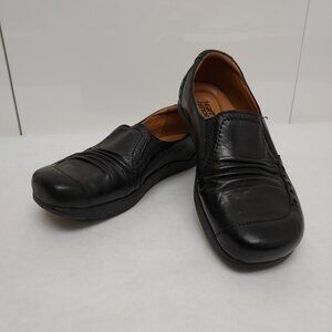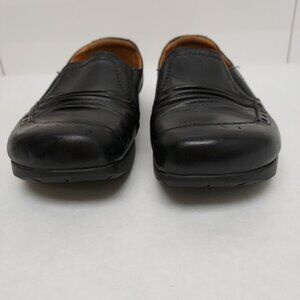 Kalso Earth Shoe Shake Loafers Women 9 B Black Leather Slip On Ruched Latex Sole