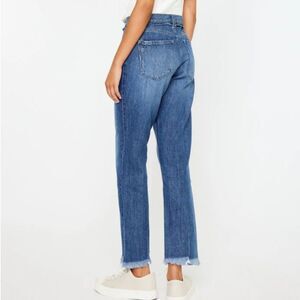 The Angelina High Rise straight slim fit is classy and trendy with its uniquely designed fringed slit hem. This slim-fit comes with fading and light distress. You can't go wrong with these beautiful medium shade blue jeans, fit for the everyday woman. This ankle jean sits just above the waist with an overall relaxed straight slim fit.