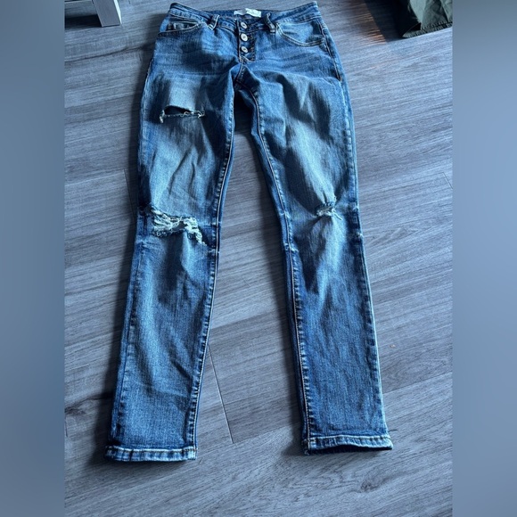 Trendy distressed skinny jeans. Comfortable and stylish. Perfect for everyday wear.