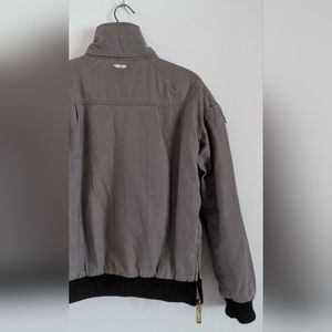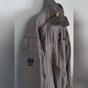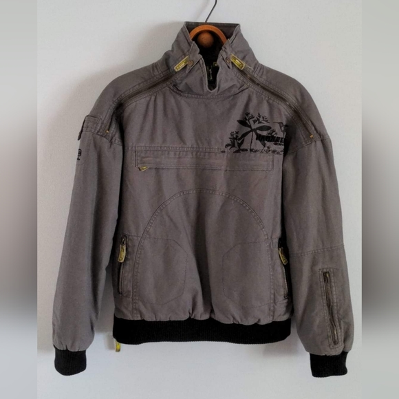 Like new, worn a handful of times. Fall/winter, Kana Beach brand jacket. Brand is out of France built on surfer culture. They closed their doors in 2019 and coupled with it's unique details, this is guaranteed to be the only jacket of its kind around! More pics below. Size 40 (US 10). Jacket is 55% hemp and 45% cotton. Designed to slip over your head. Two zippers from the collar across the shoulders and one side zipper from the waist band to the right armpit. Secret weed pocket. This jacket has 6 pockets including hidden ones.