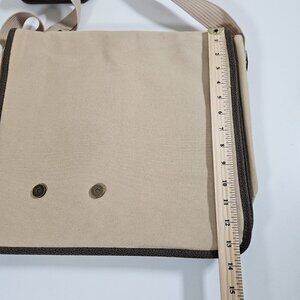 Kanata Sport Messenger Bag Beige Canvas Crossbody Pockets Shoulder Strap FLAW