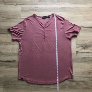 Chic mauve tee with button detail. Soft and comfortable. Ideal for everyday wear.