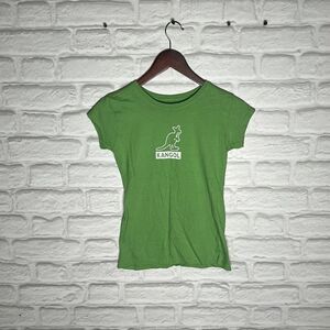 Kangol Salmon Pink White Four Button Rounded Neck Striped Tee VG XL