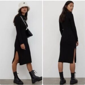 Kangol x H&M women's black ribbed long sleeve dress xs