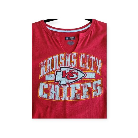 Kansas City Chiefs Women's Red Distressed V-Neck Tee Size M