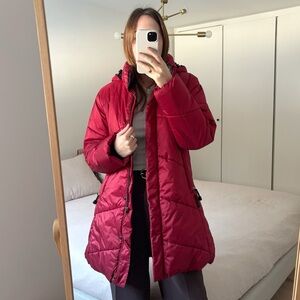 Kanuk Vintage Puffer Winter Coat Mid Long Red Size 2 or M Warm Hooded