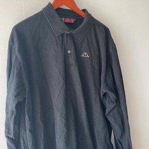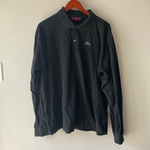 Kappa Men Solid Black Long Sleeve Pull Over Polo Shirt Size XXL