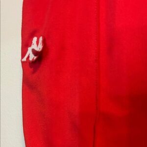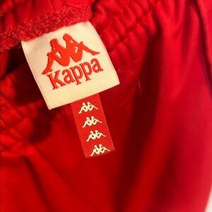 Bold red joggers featuring iconic Kappa logo tape on the side. Ideal for casual wear.