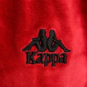 Bold velour red joggers featuring black Kappa logo stripes. Perfect for casual and active wear. In great condition. See photos for measurements.