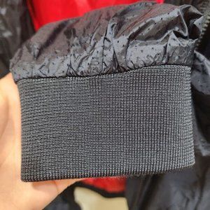 Upgrade your wardrobe with this Kappa Windbreaker Jacket in Men's Large. Featuring a stylish black exterior with a bold red interior, this lightweight hooded jacket is perfect for casual wear, sports, or streetwear fashion.