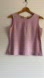 Kara Casual Petite. Silk - this is a nice, heavier silk. A pinky-purple lavender colour. Slits at hip. Pleats at neckline. Rounded neckline. Sleeveless. Great used condition: no button loop at back.