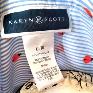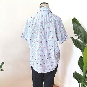Karen And Scott Women's Blue Striped Shirt With Red Ladybugs. Size XL.
