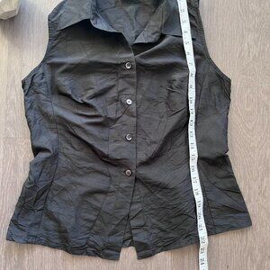 Karen Kane Silk Sleeveless Button Down Blouse (with Crinkle look)
