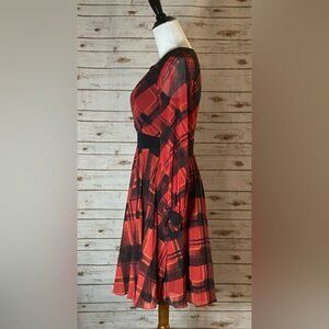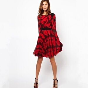 Karen Millen 100% Silk Check Print Fit & Flare Long Sleeve Dress - Size 4