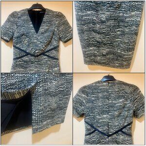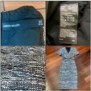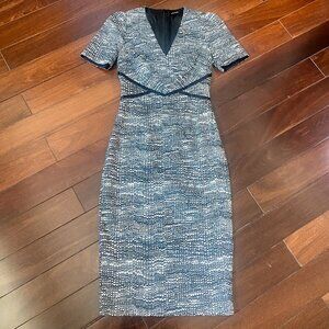 Karen Millen Abstract Print V-Neck Pencil Satin Dress with Silk Detailing Size 2