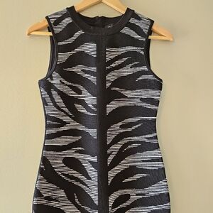 Karen Millen Bandage Bodycon Zebra Print Sleeveless Mini Dress Black Grey Size Small.